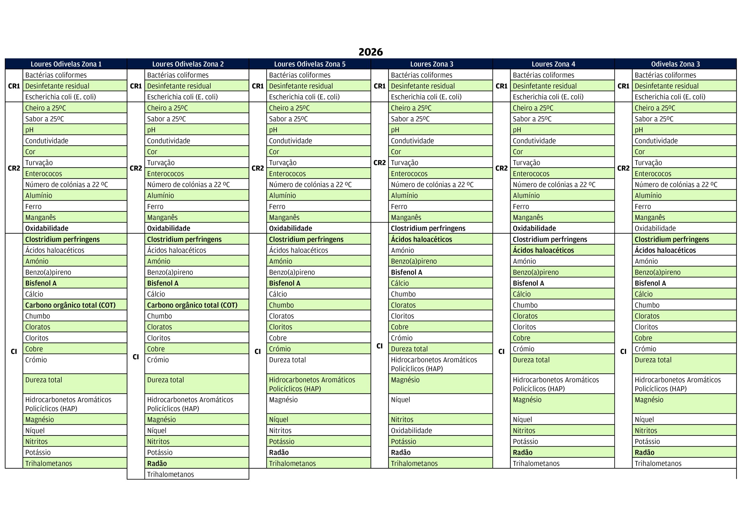 CR1 – O Controlo de Rotina 1 são os controlos de maior frequência, dizendo respeito à microbiologia básica e desinfetante residual.